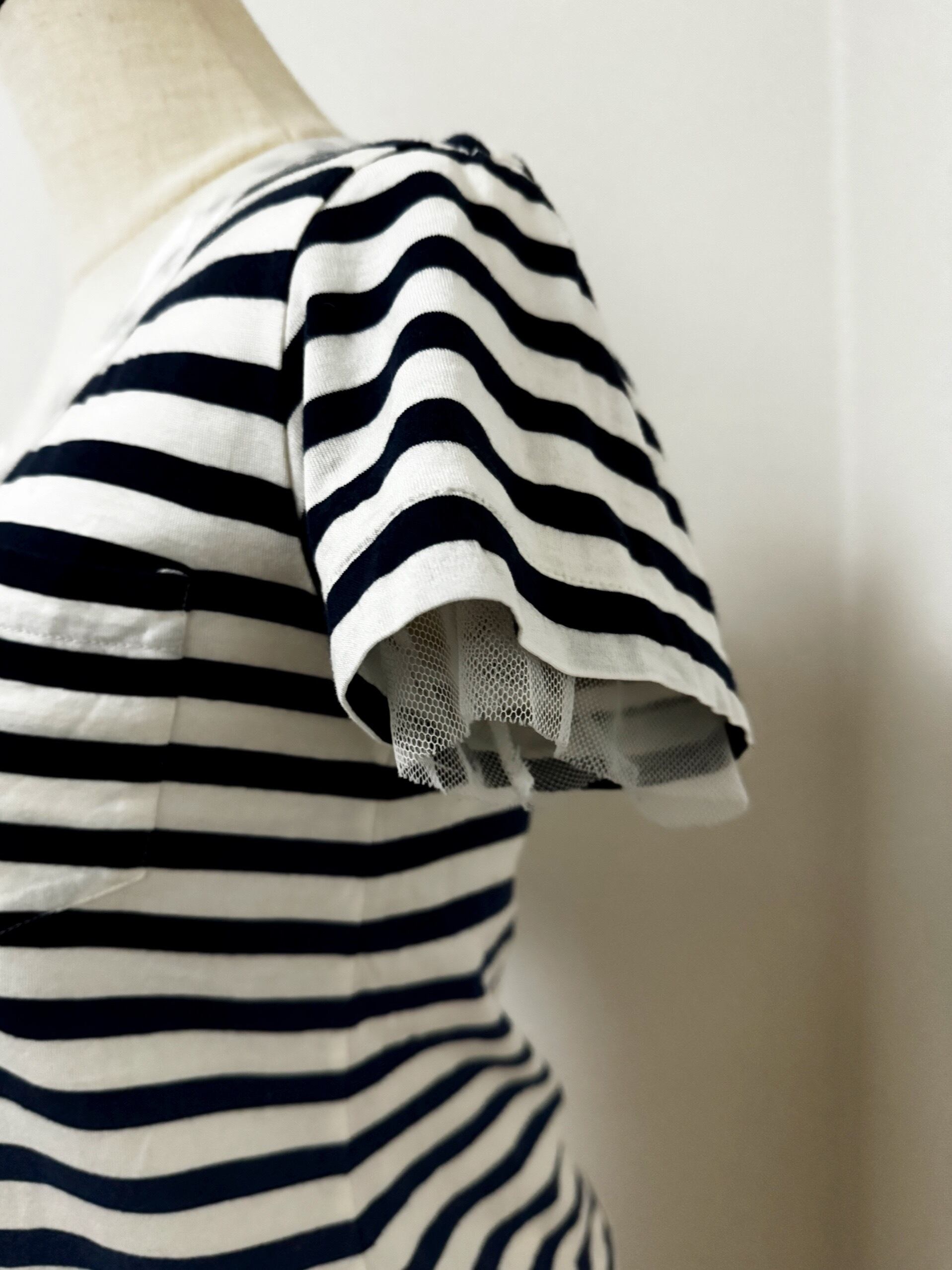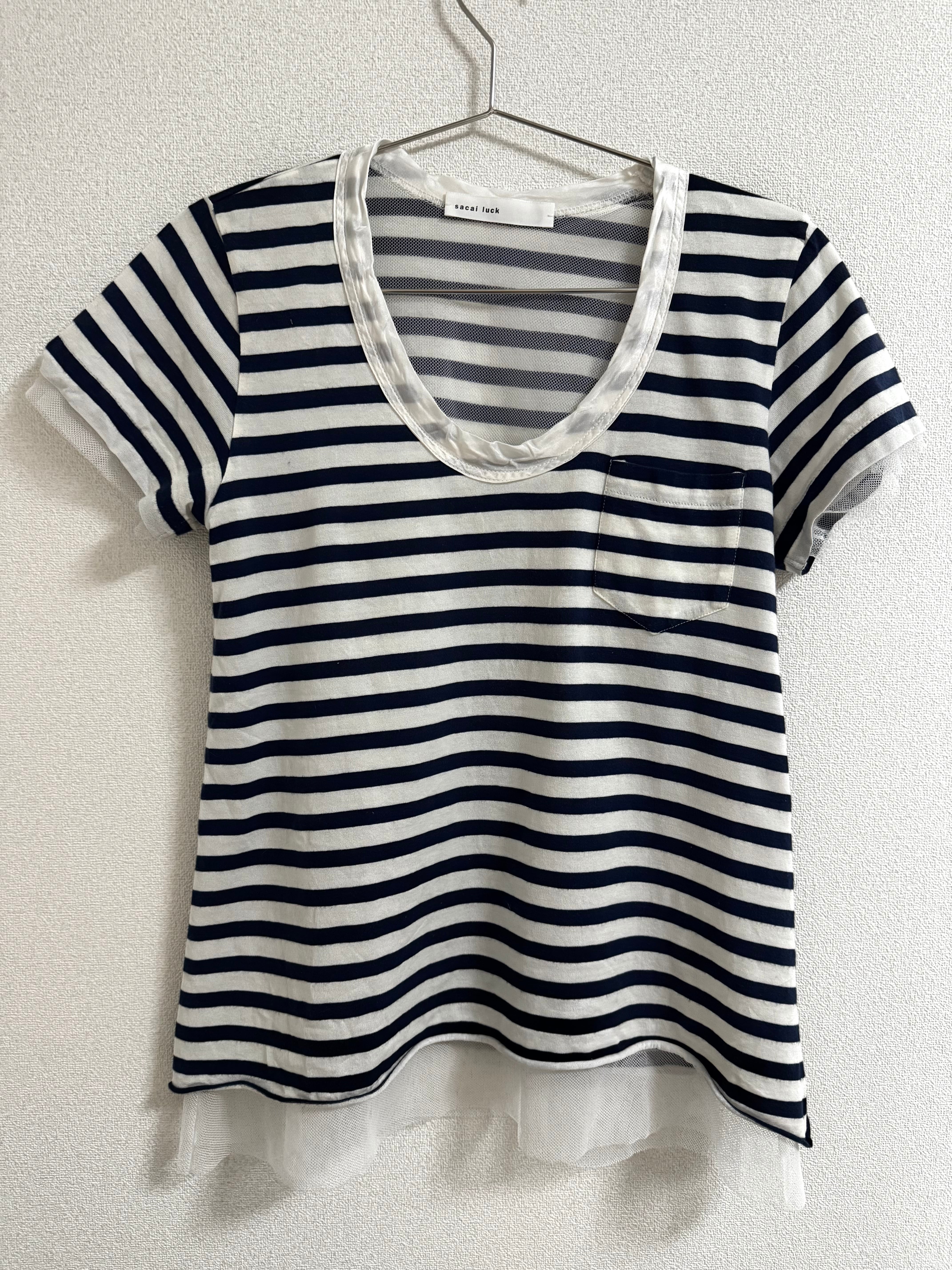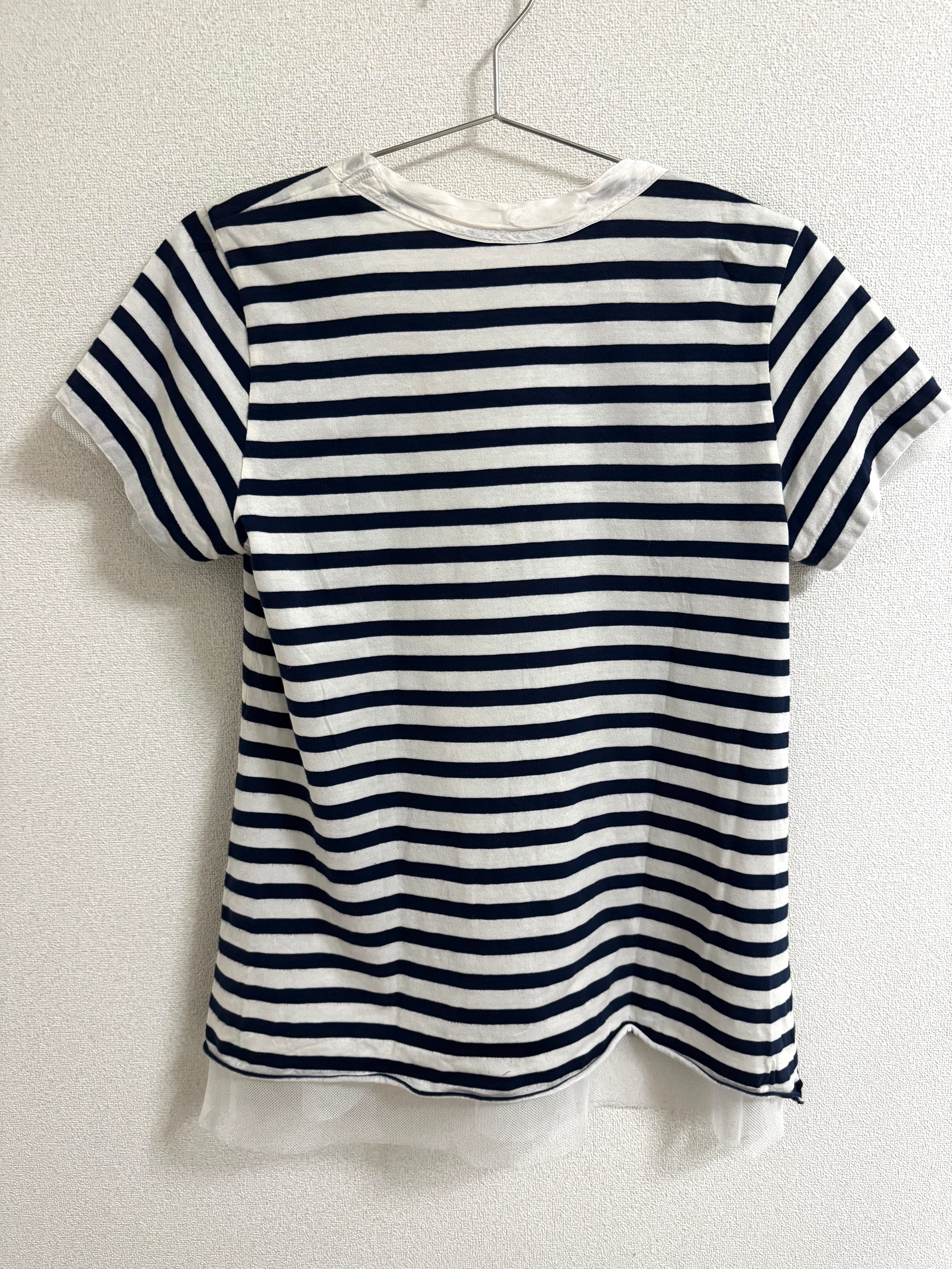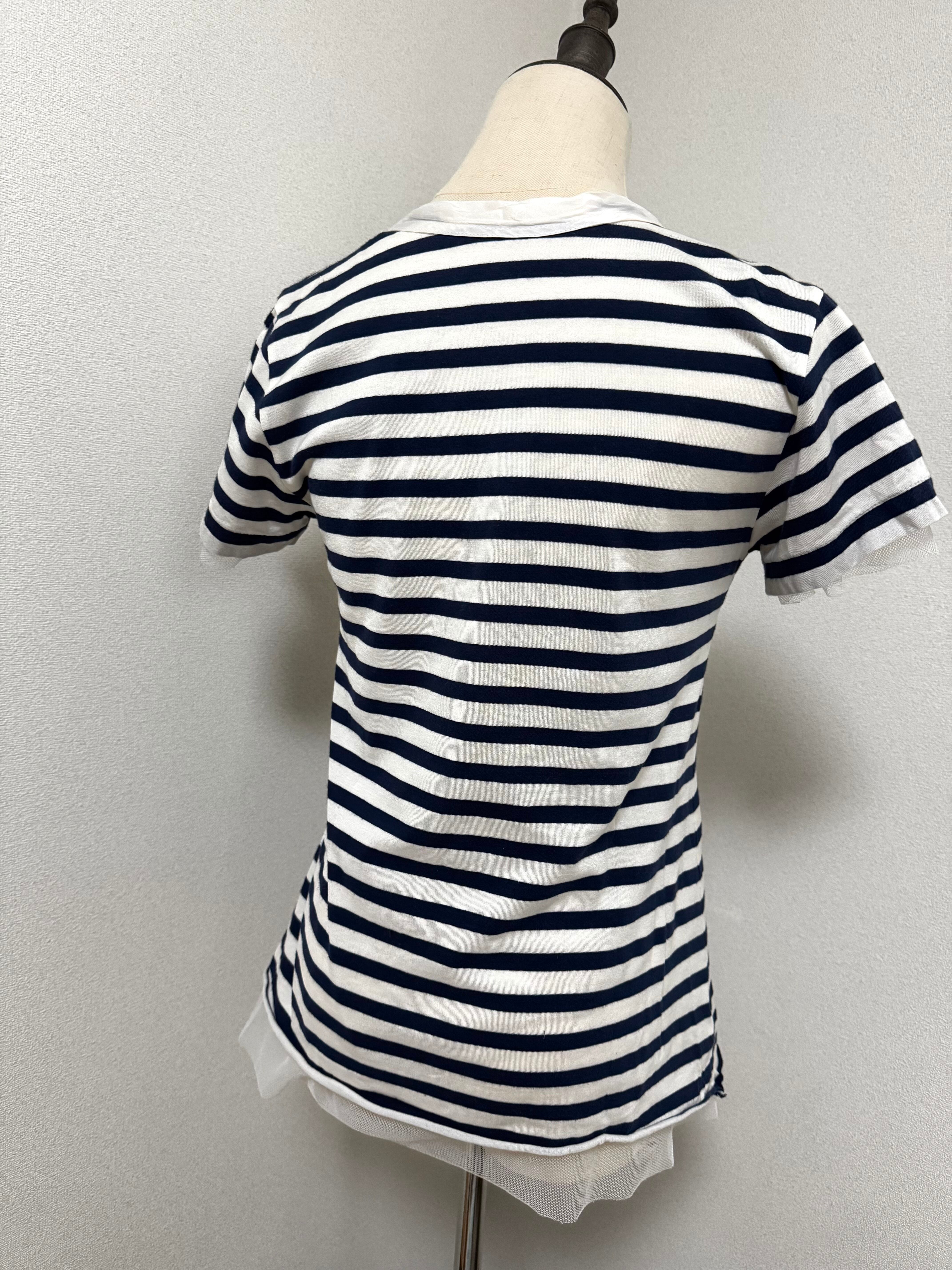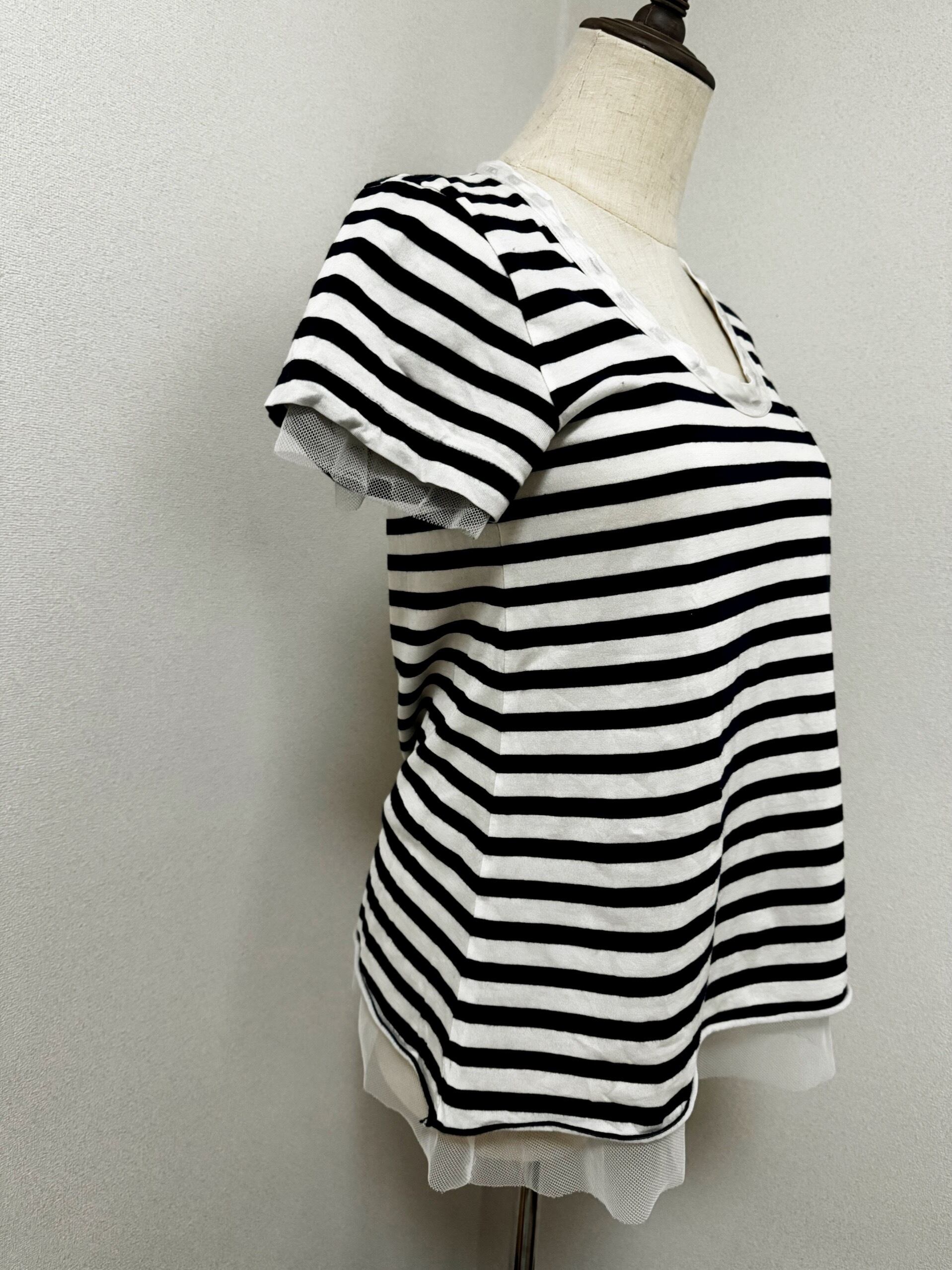 チュールがデザインに加わり、シンプルながらも女性らしい可愛らしさが表現されているサカイラックのボーダーTシャツです。