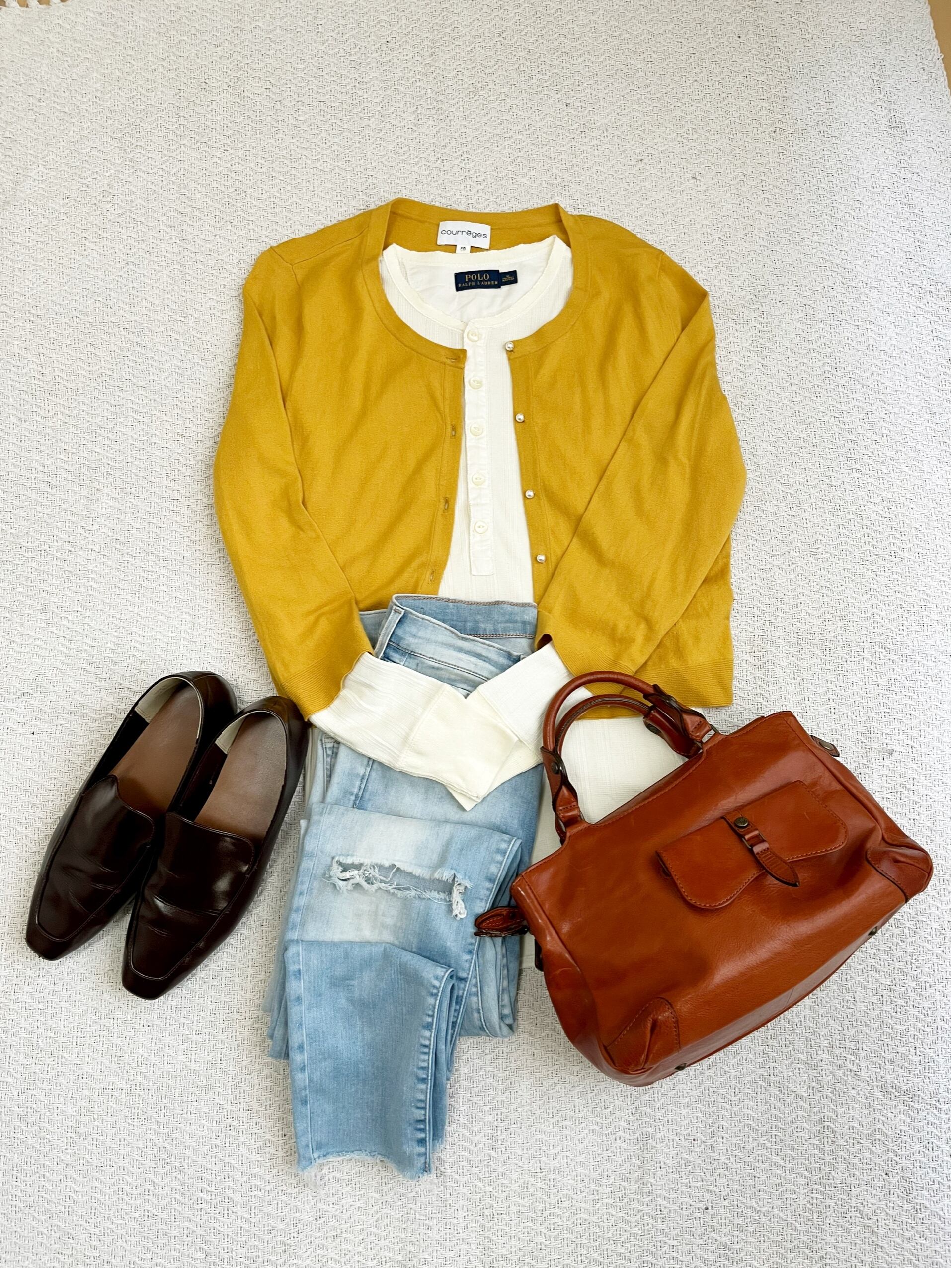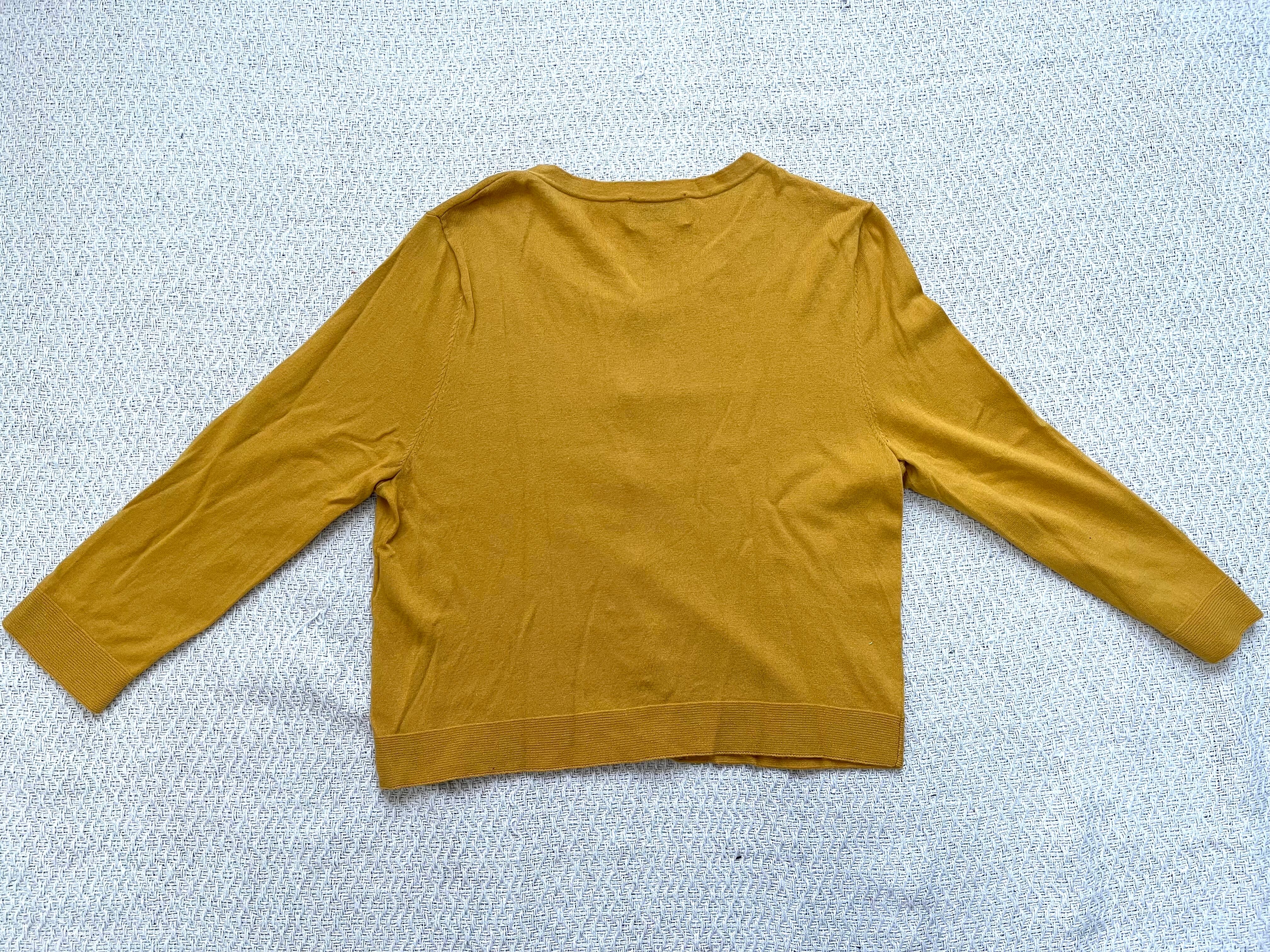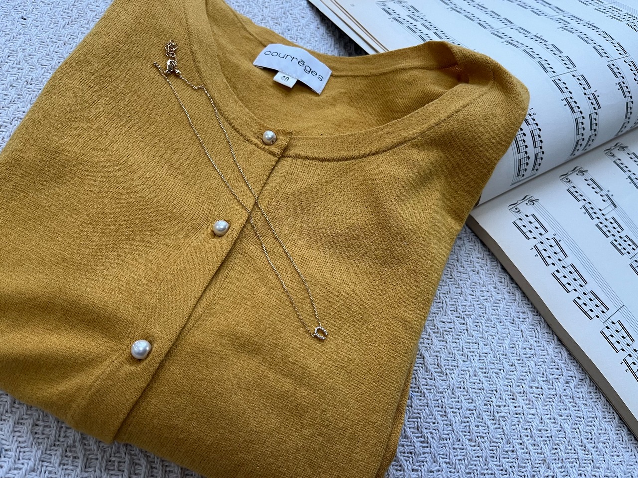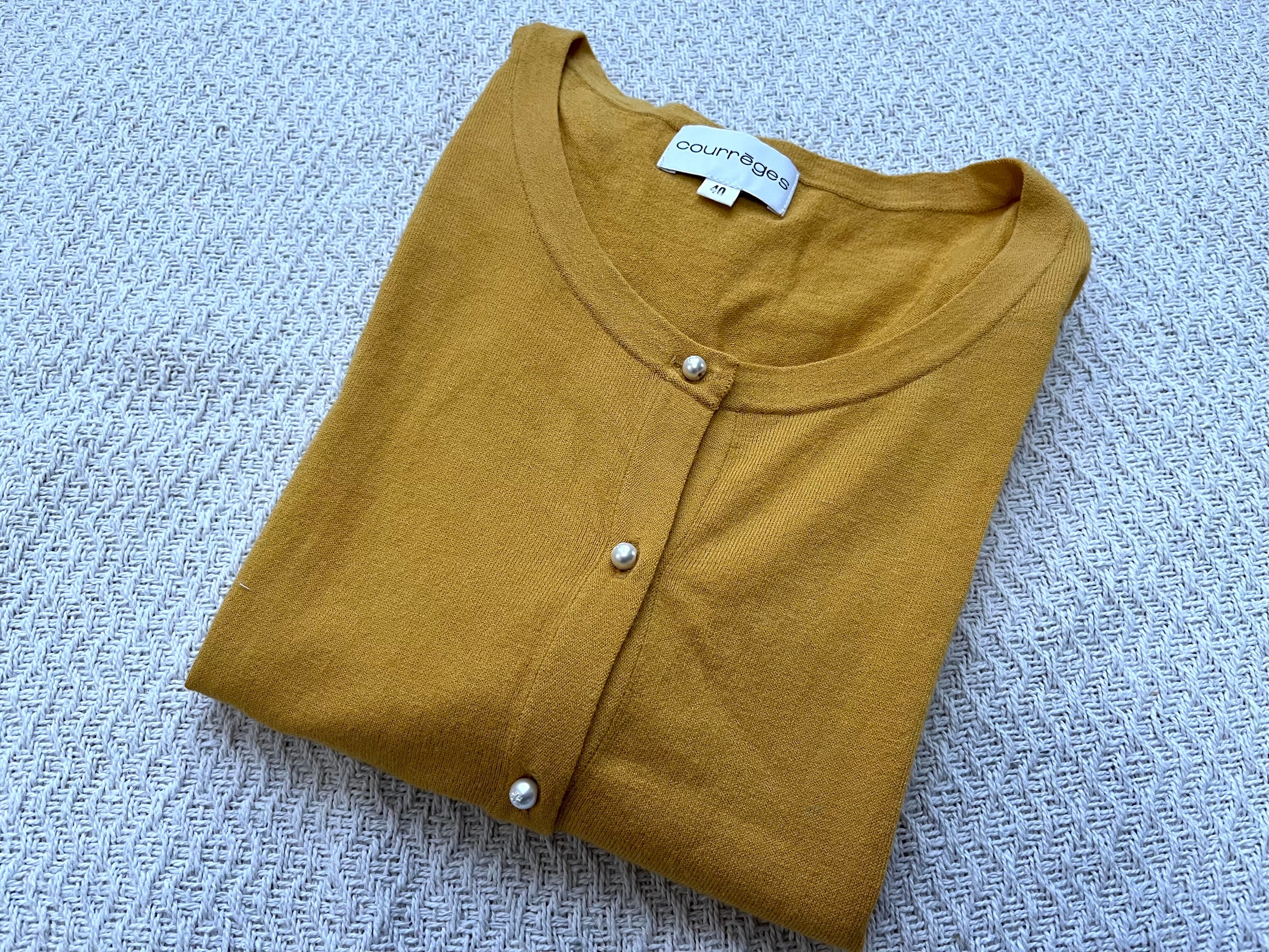 ヴィンテージ感漂うクレージュのマスタードカラーのニットカーディガン。