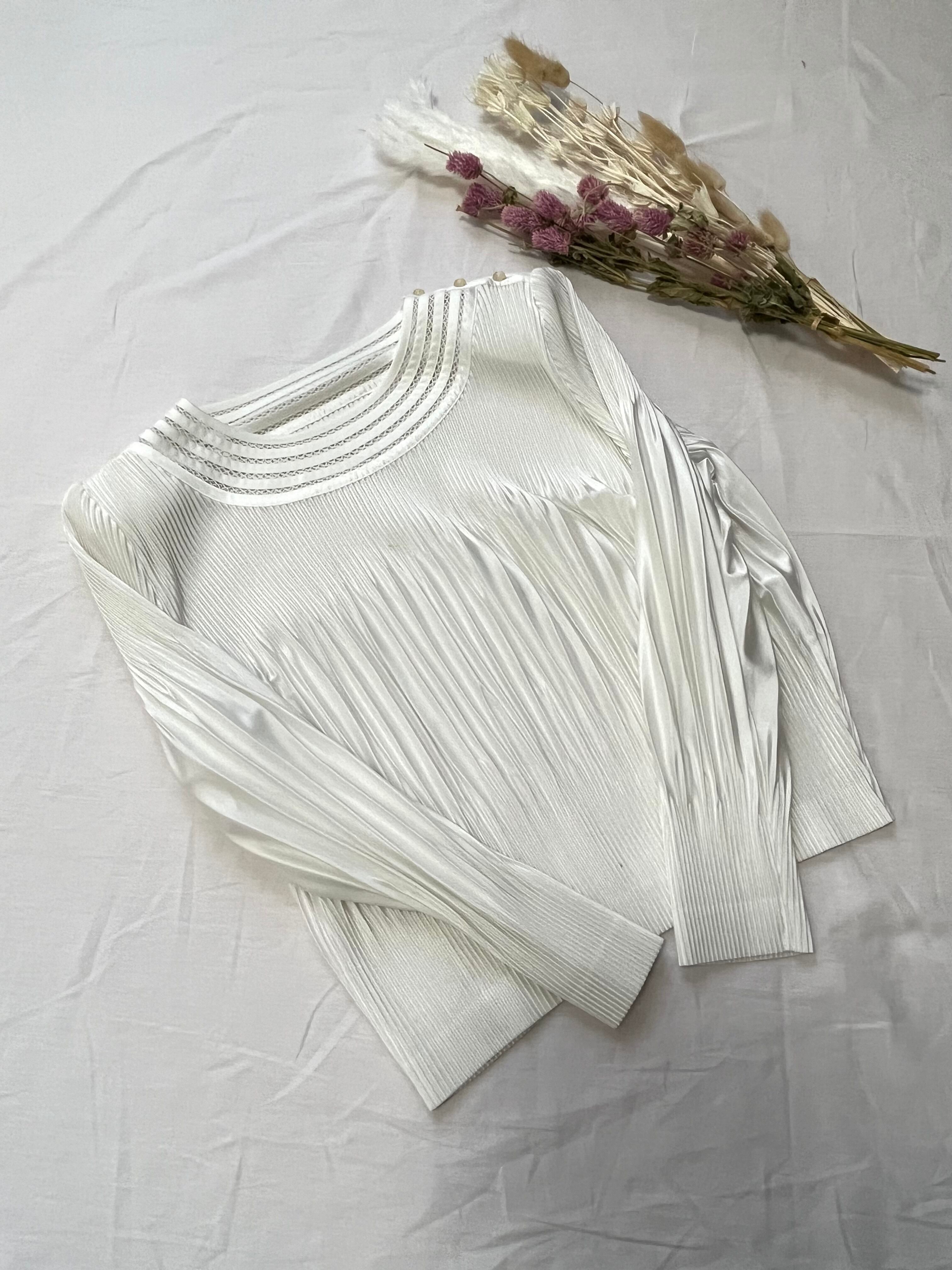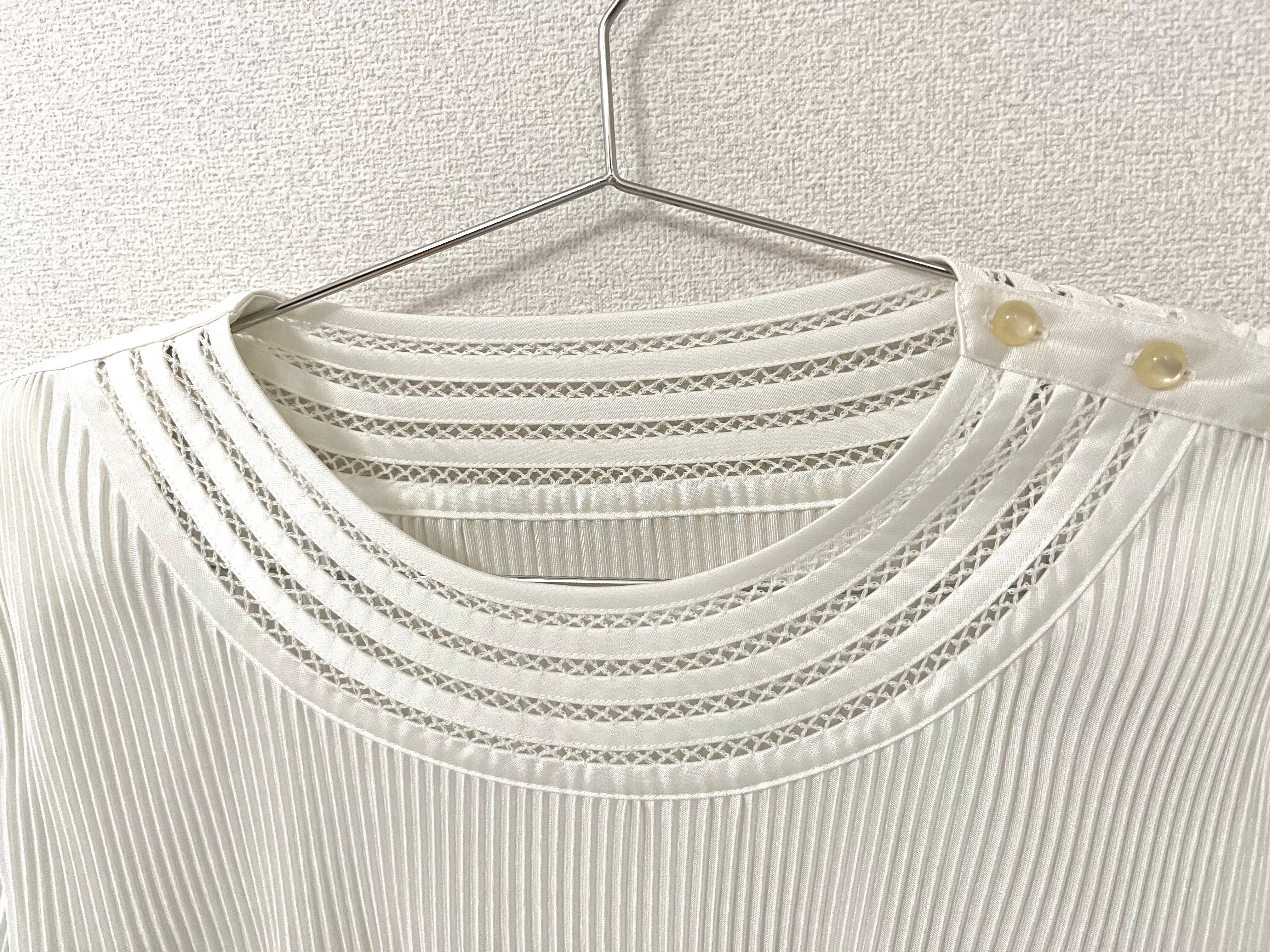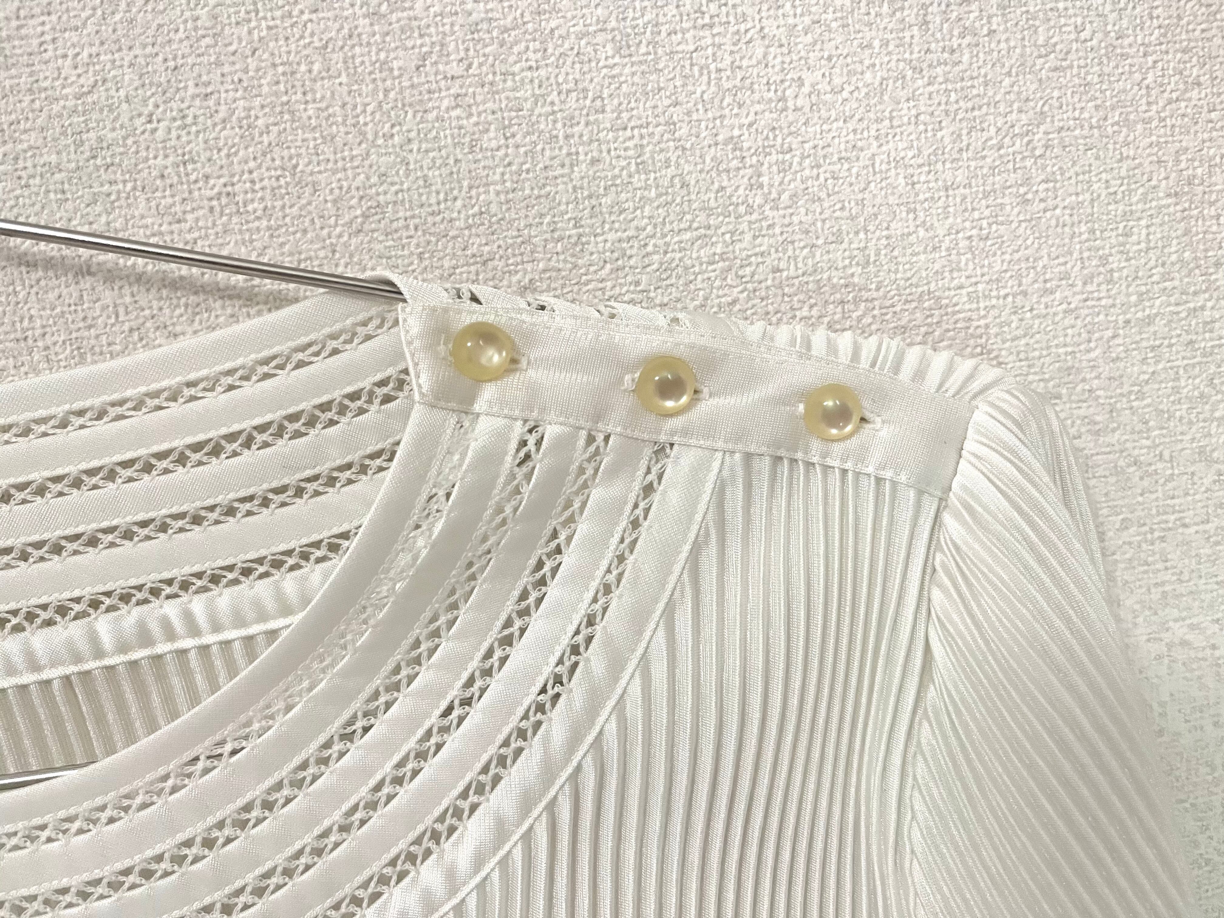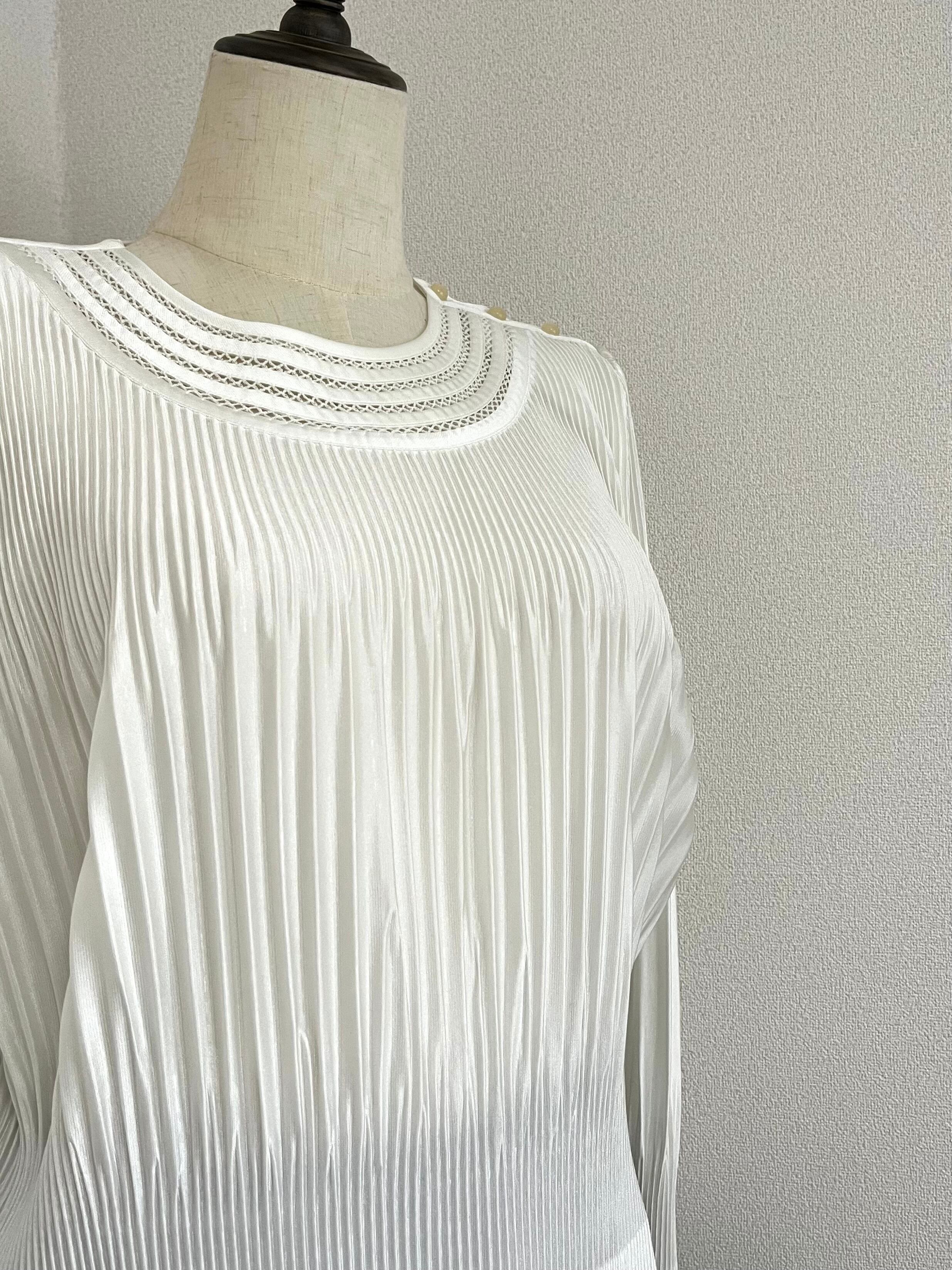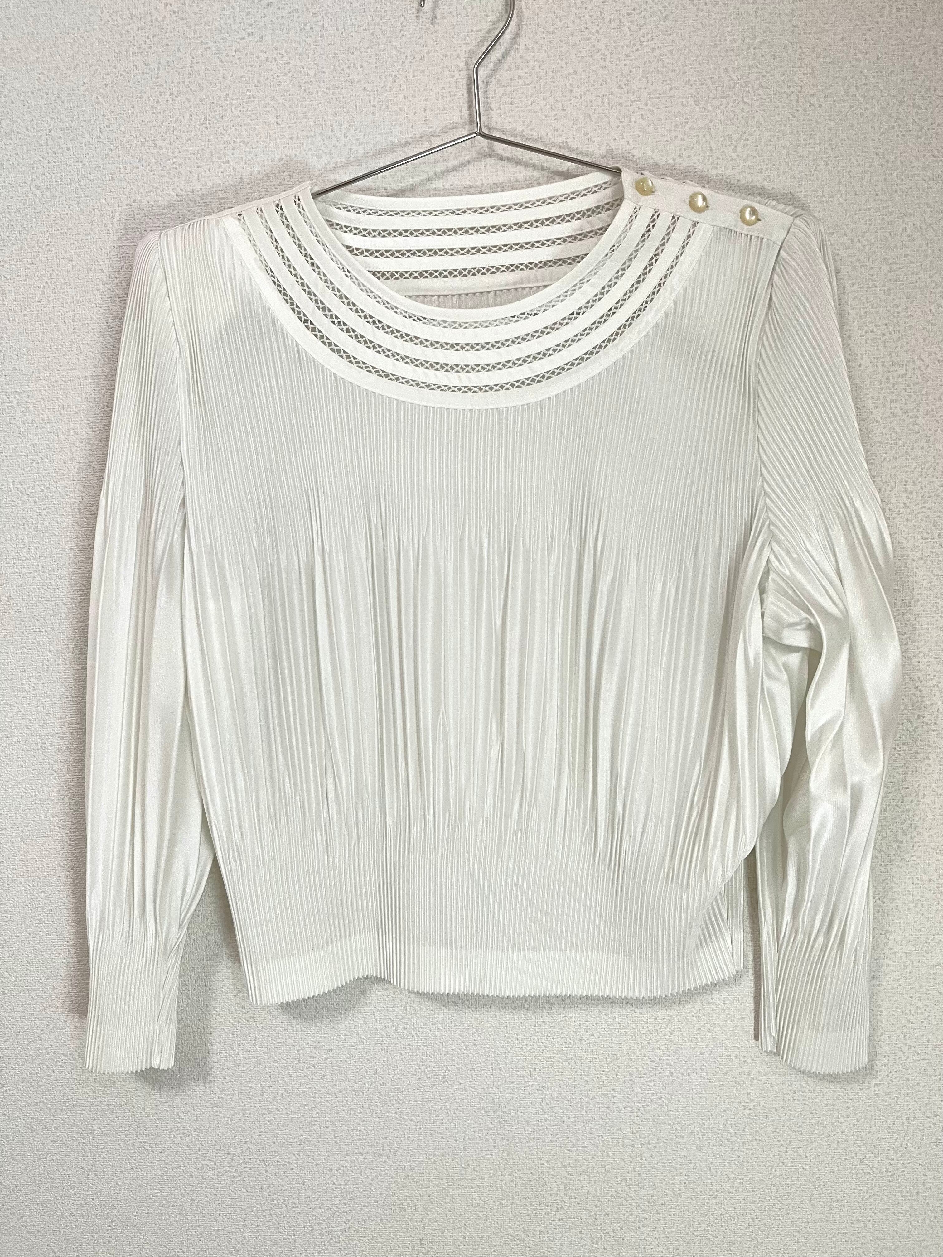 90'sホワイトプリーツシャツ ホワイトブラウス